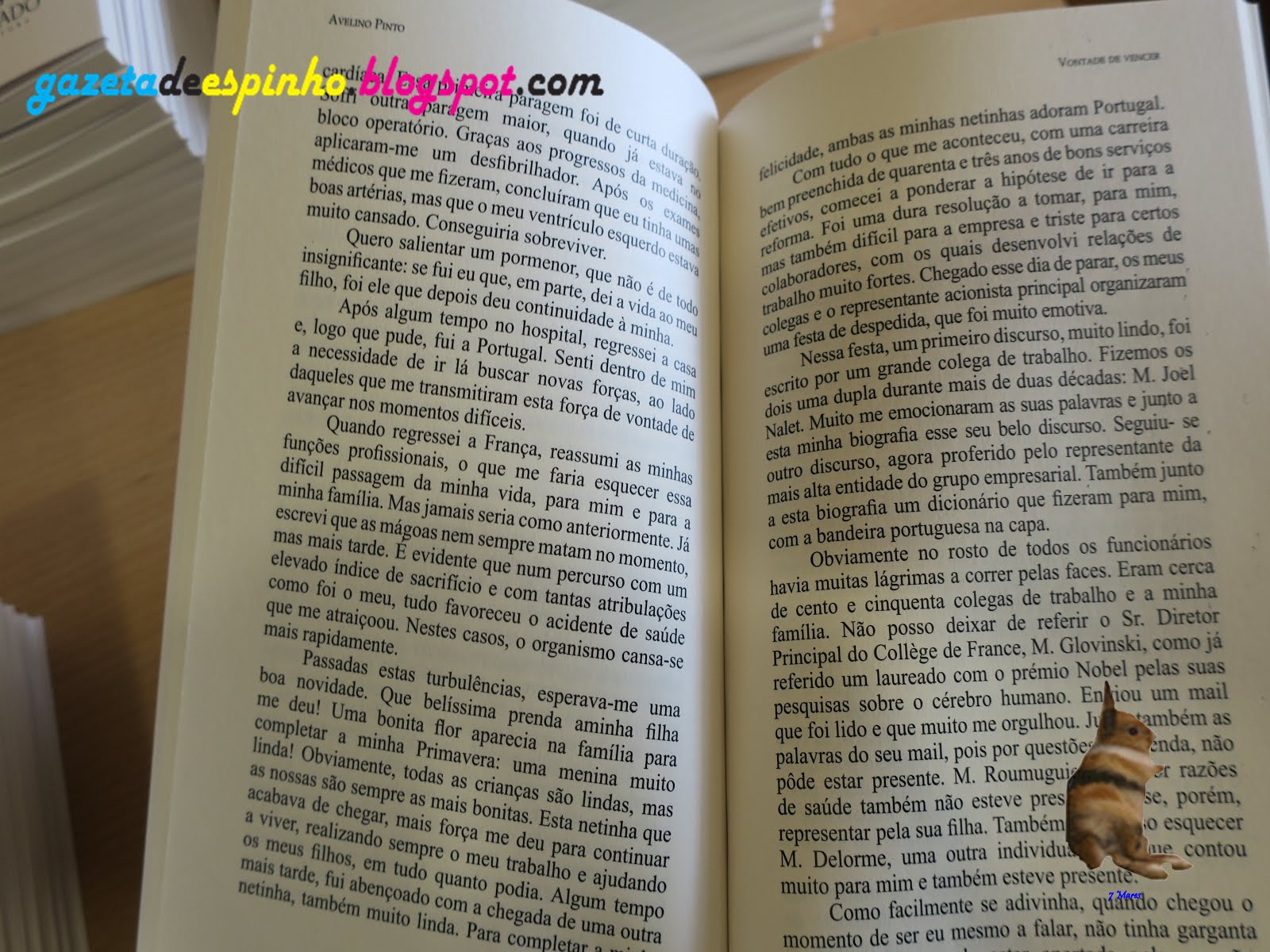 Apresentação Blog Gazeta de Espinho O Blog Gazeta de Espinho nasceu dia 6-06 -2006 para dar informação ,entretenimento,os documentários e reportagem de fotografias e vídeos sobre Concelho de Espinho. Podem ver os meus trabalhos jornais em portefólio Pseudónimo 7 mares
